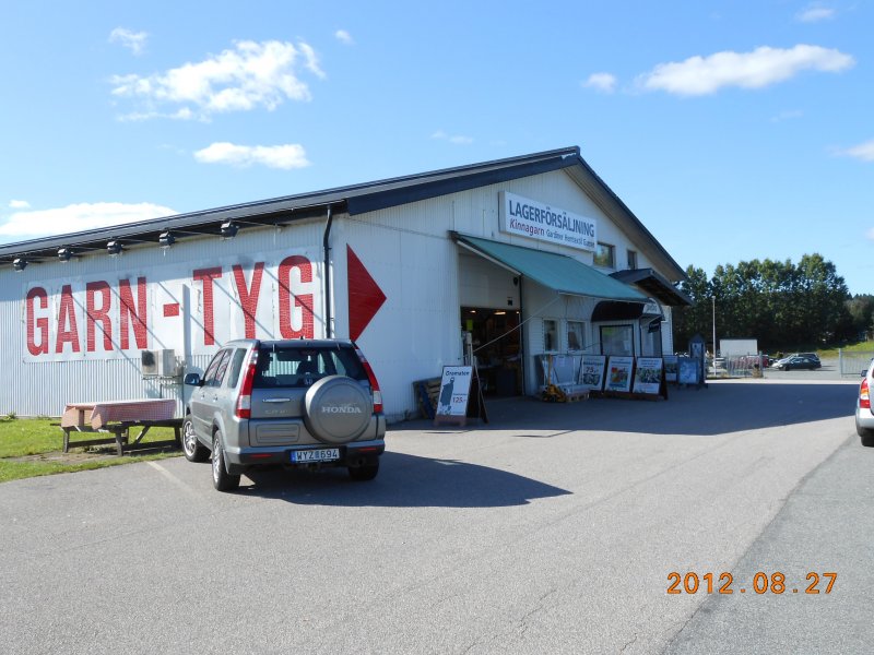 Där inhandlades poncho och lite garn samt en ny vaxduk till campingbordet. Så småningom vaknade även Harriette & Sture som också gjorde ett besök i butiken och handlade. Efter konferans åkte vi till Skene och provianterade. Därifrån åkte vi till garnaffären i Kinna där vi stämt träff med Harriette & Sture.