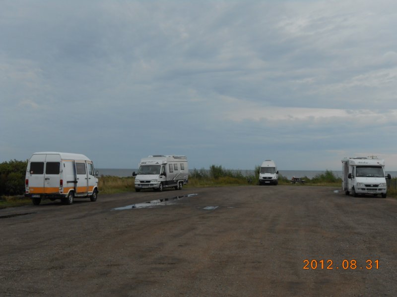 det dax att åka till Trelleborg. Först blev det en proviantering på Maxi för den stundande resan till utlandet. Sture har bokat biljetter till färjan som går 12:45 till Sassnitz. Nu står vi på en gräs- och grus-parkering några hundra meter från färjeterminalen. Då vi nu lämnar Sverige kommer vår Hälge sida uppdateras sporadiskt vart efter vi hittar nätverk.