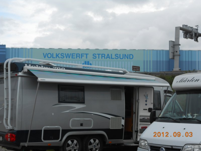 regnskur. Färden gick nu söderut mot Stralsund, där vi bor inatt det blev hela 7 mil som vi åkte. Vi tar det mycket lugnt och har det bra. Fram på eftermiddagen klarnade det upp så vi fick solsken.