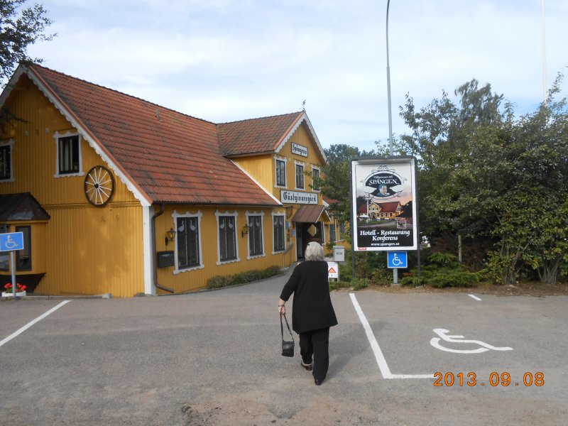 Efter att vi hade handlat lite på Maxi iTrelleborg. Sedan åkte vi till fam Hall och tog en kopp kaffe medans Bettan lekte med Soy, Shar Pei och Sam, Bulldog. Efter ett par timmar åkte vi till Spångens Gästgiveri där vi åt en god middag (Skåne panna). Från Kalle på spången fortsatte vi fyra mil till Skåneporten där vi bor på Bengt i Örkeljungas ställplats inatt.