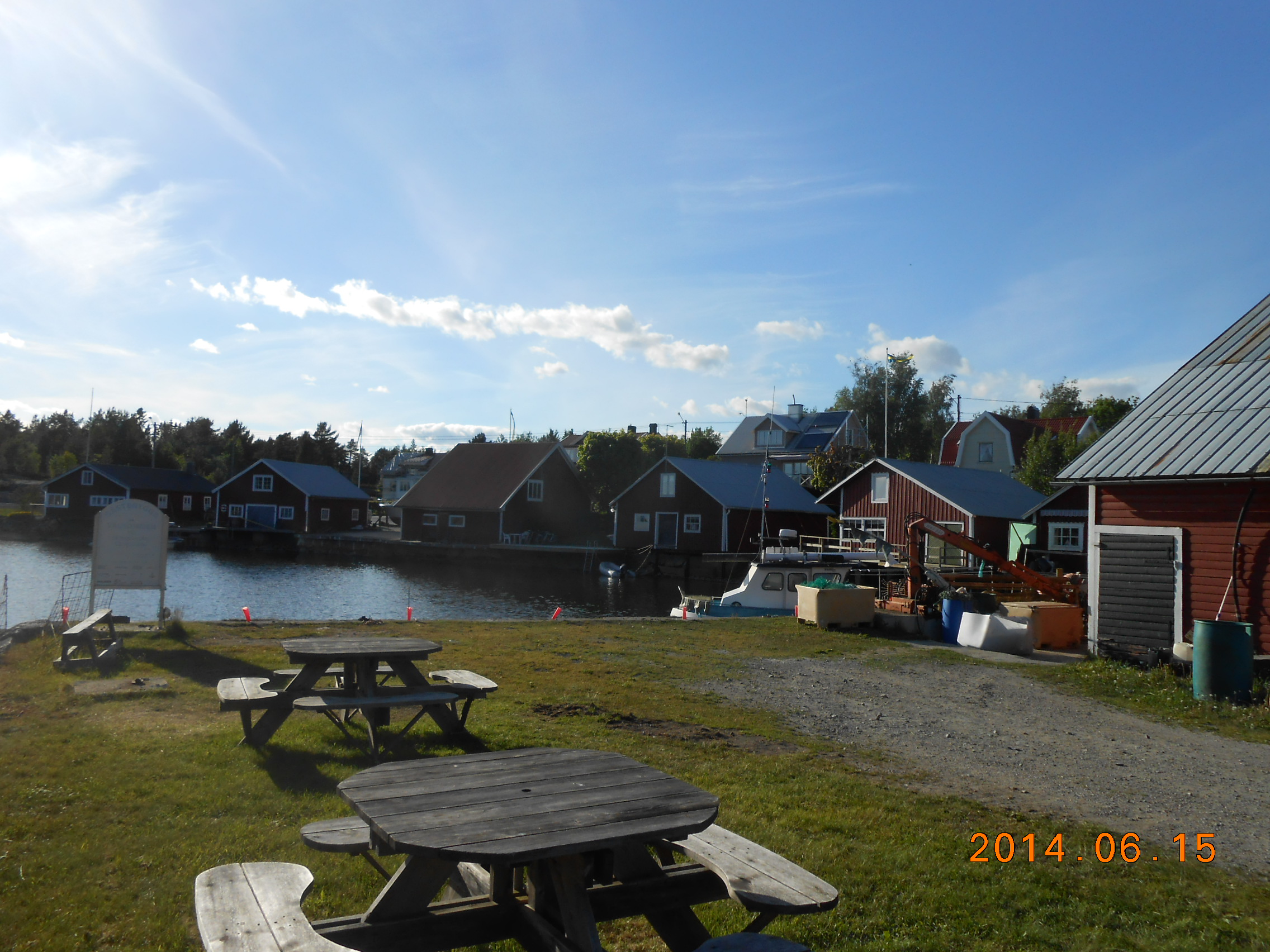 Uppe med tuppen så att vi kom iväg tidigt. Provianterade lite på Lidl i Härnösand. Fortsatte till Ö-vik, stannade först på Fjällrävens arena parkering. Eftersom det inte var en så djurvänlig plats, Åkte därför till Skeppsmalen istället, det är ett litet fiskeläge som ligger knappt 3 mil från Ö-vik. Här säljs de rökt fisk, så därför blev det rökt sik till middag idag. Har haft sol och vackert väder hela dagen.