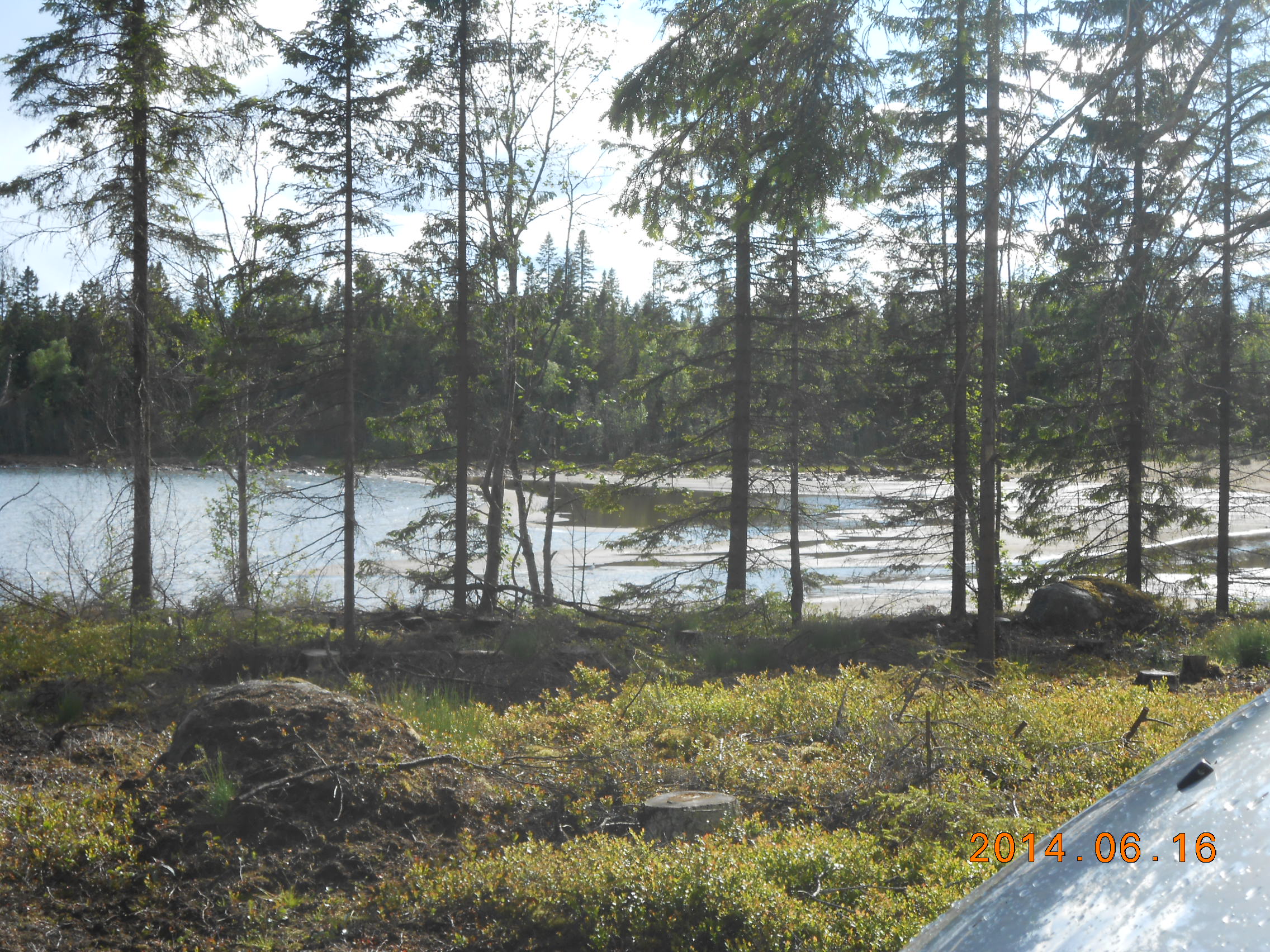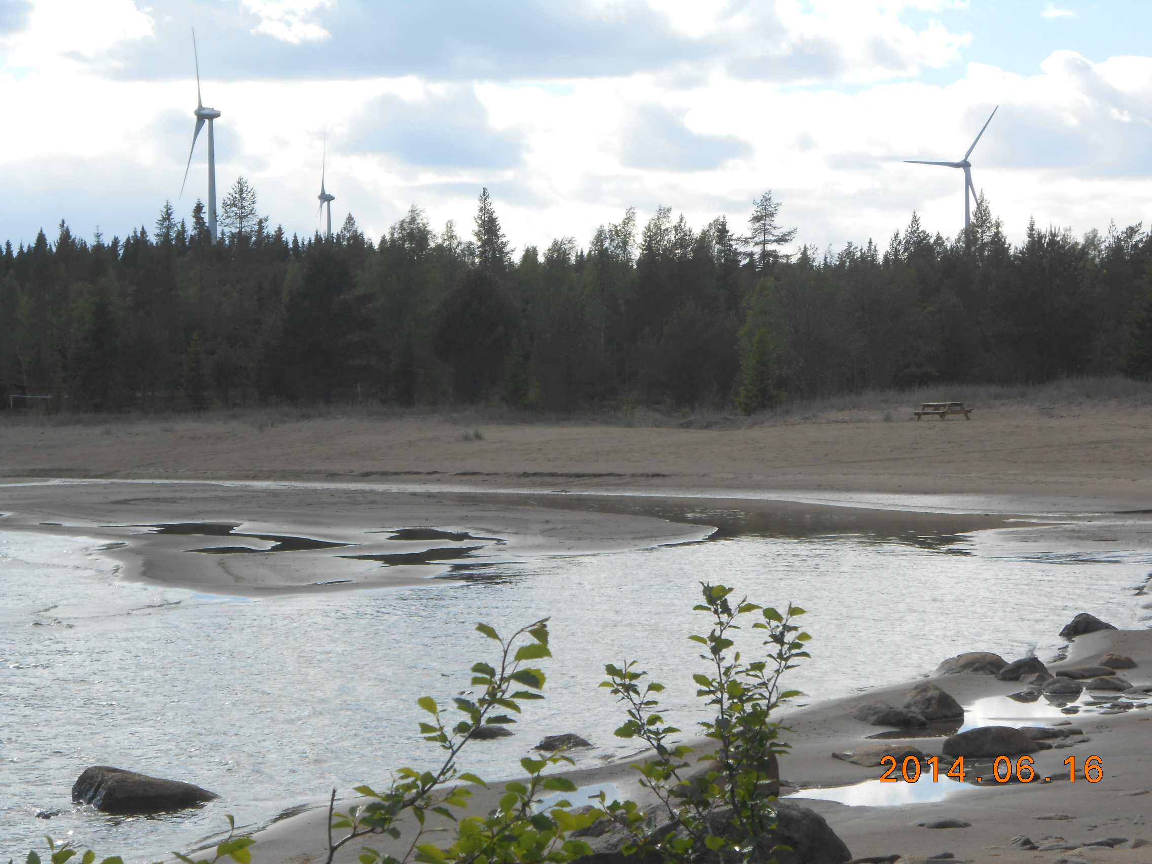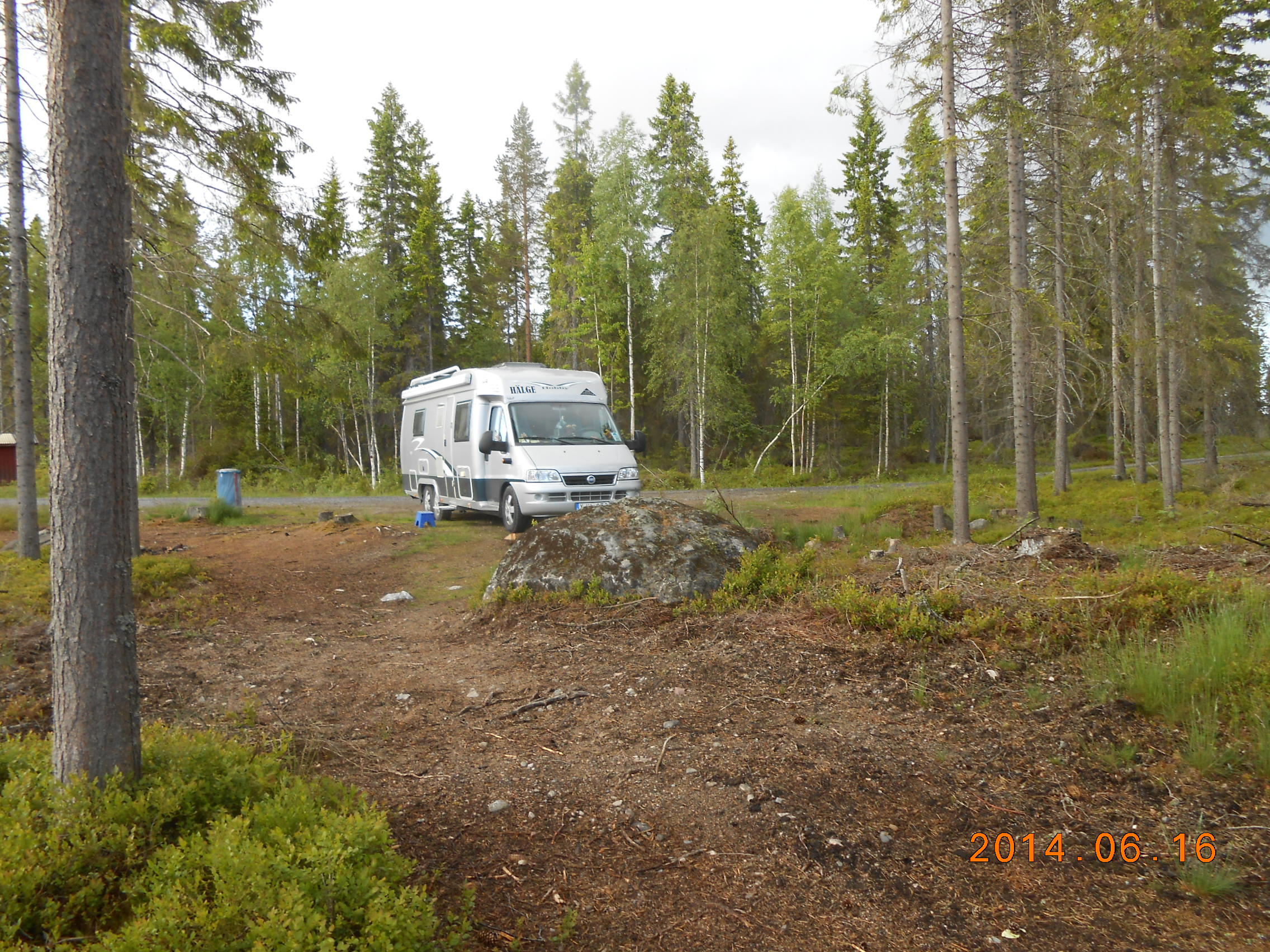 På förmiddagen bar det av mot Umeå, för att i första hand köpa gasol. Vi passade också på att köpa midsommarsnapsen på systembolaget, dessutom tog vi en tur på Coop. Lunchen intogs på Frasses hamburgerbar. Mätta i magen fortsatte vi 4-5 mil och svängde i höjd med Robertsfors ut mot kusten står nu vid badplatsen Killingesand och tittar ut mot norra Kvarken, man kan tro är ute i ödemarken men två bilar och en fotgängare har passerat. I dag har det varit ömsom sol ömsom vatten och där emellan en hagelskur, och värmen har försvunnit.
