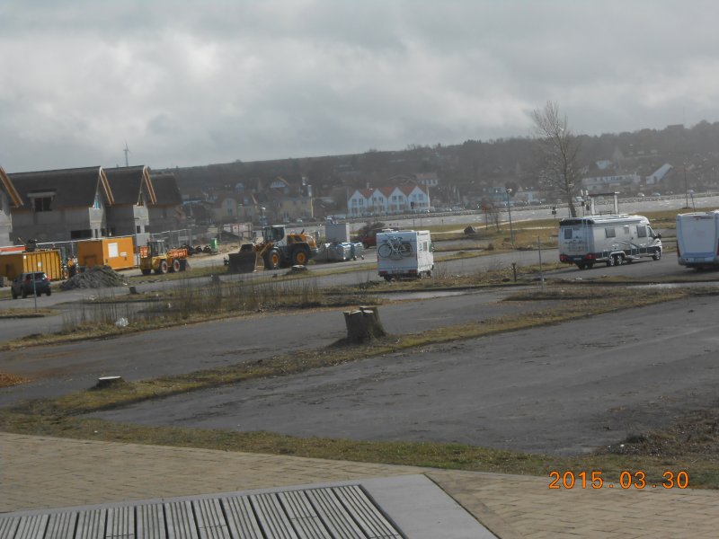 Efter morgonbestyren bar det av mot Rødby. På färjan till Puttgarden så gungade det lite. Hann både fika och handla innan vi var framme. Först anhalten i Tyskland var Burg, där vi fyllde våra gasoltuber. Fortsatte mot Heiligenhafen, stellplatsen där vi brukar stå hade upphört och var nu en begynnande arbetsplats. Vi hittade i allafall en betydligt mindre stellplats än den gamla (20 pl istället för 100pl). Nu blåser det ordentligt småstänker mellan varven och bara 4grader varmt.