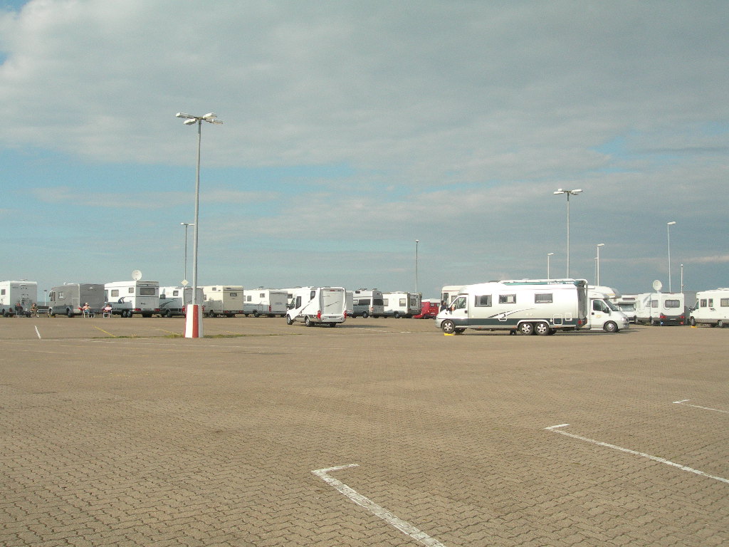 vatten. Den här campingen hade också getter men bara 2 stycken. När allt var tömt och fyllt så fortsatte färden mot Cuxhaven i Tyskland. Här står vi igen i det gamla färjeläget mitt på plan och ser bara andra husbilar. Det är fullt runt kajerna. Har beställt tid hos Forsbergs på onsdag den 24 så nu börjar vår semester lida mot sitt slut.