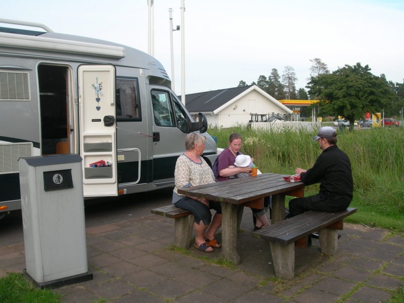 På eftermiddagen hämtade vi Elia i Hökarängen därifrån åkte vi till Oxelösund. Då vi kom dit var Mårten med Harriette & Sture där. De hade varit i Linköping i veckan och fått sin markis fastskruvat som satt lite lös, Tuppen var också där med sin nya husbil.